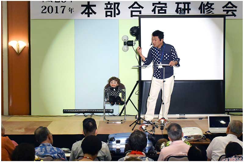 「初心者向きの腹話術入門」から「ベテランへの高度な腹話術」のノウハウの勉強会。全国の会員~有志がだれでも参加できます。